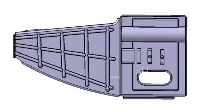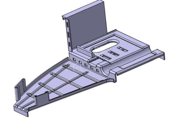 利用最少零部件精益設(shè)計(jì)理論,在保證電池托盤現(xiàn)有功能的前提下,對(duì)電瓶托盤支架進(jìn)行全新設(shè)計(jì),電瓶 托盤支架總成材料采用 PP+GF30 注塑一體成型,并將電瓶托盤支架整體注塑為 1 個(gè)零部件,采取卡接結(jié)構(gòu)與車 架相連,最終方案為蓄電池托盤總成零部件數(shù)量減少為 7 個(gè)。在零部件數(shù)量減少的同時(shí),滿足了部件原有功能 要求,零部件成本大大減少,由于取消了標(biāo)準(zhǔn)件的固定,零部件質(zhì)量得到大幅度提升,與車身的連接采用卡扣 結(jié)構(gòu),實(shí)現(xiàn)了蓄電池托盤總成的快速安裝。