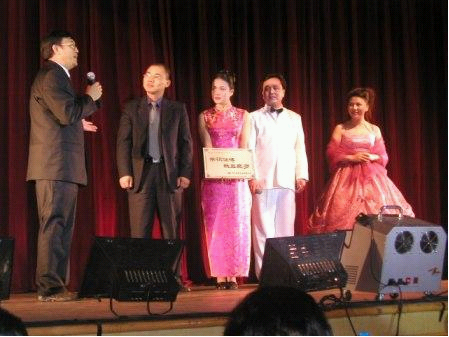 TCL金能電池公司董事長郭春泰博士在TCL新春晚會上為饒老師頒發(fā)特別獎?wù)?/p>